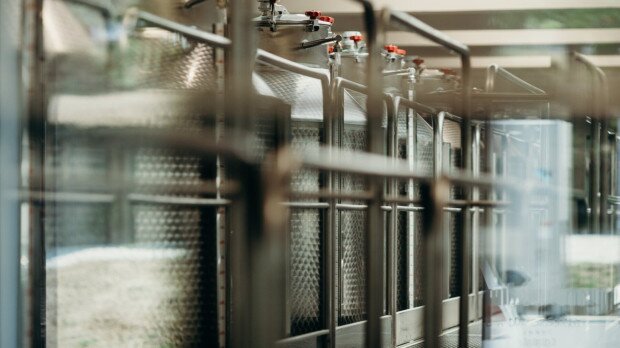 We are proud that an iconic building has been transformed to include a modern estate centre and technology plant. The design was preceded by careful analysis, lots and lots of experience, domestic and foreign harvesting, all of which continued with the acquisition of state-of-the-art equipment. This is how the outstanding wine centre of the region was established, where a sparkling wine making facility is located, so we can have a toast with a bubbly as well! The 2019 was the first harvest to take place in here. With a direct view of the huge tanks from the guest room, so we immediately get a little closer to winemaking.