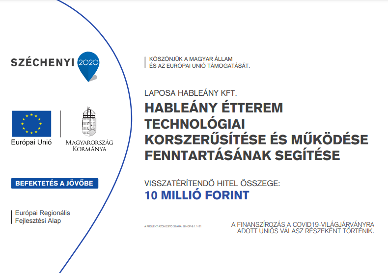 Hableány Étterem technológiai korszerűsítése és működésének fenntartásának segítése